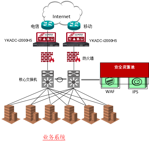在客户业务的出口双机部署东升国际通明湖应用交付控制器,并配置链路检测配置文件,若线路故障实现自动进行主备切换故障转移。